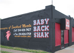 Let me eat my words. Or rather, let me eat these ribs. I found the mecca of Dallas BBQ. Hell, I found the best restaurant IN Dallas. Yes, folks, I’m talking Akard St’s incredible BABY BACK SHAK. Caveat — this shak bills itself as “Memphis-Style” BBQ. And that’s obviously not in Texas. So what? Sink your teeth into the tender, dry-rubbed meat and you’ll get a glimpse into what a crack-addict might feel like. You gotta get another bite. Somehow. Someway. Soon-to-be-wife told me I was moaning and dreaming about ribs the other night while I was biting the sheets — had to be Baby Back Shak.