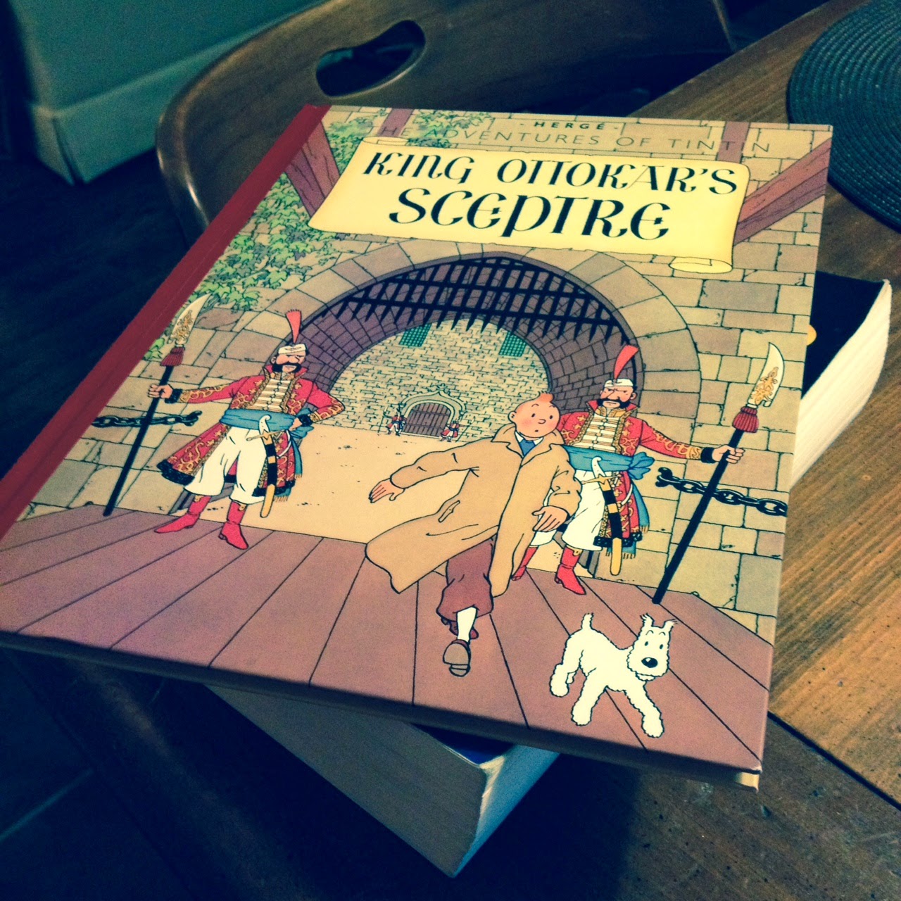 Today I made my way up thru a rainy stretch of 635 where I popped in to the Preston Rd Half-Price Books. Discovered several volumes of hardcover facsimiles of Tintin for sale so I grabbed 3 copies at $10 a throw. Sounds like a lot but these things go for $30 a piece if you can find them.